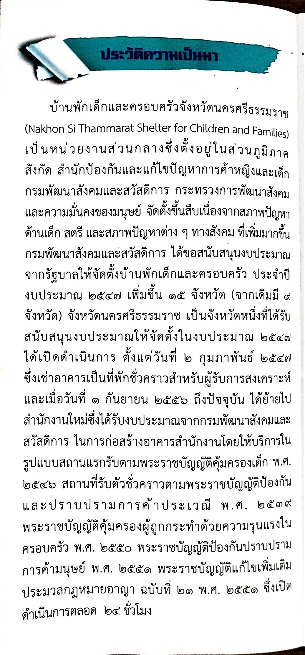 ความเป็นมา และเป้าหมาย กรมกิจการเด็กและเยาวชน จังหวัดนครศรีธรรมราช